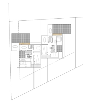Se trataba de proyectar dos viviendas en dos parcelas de tamaño ajustado. Considerando que los retiros obligatorios en el caso de plantearlas exentas hacían que la vivienda fuera muy estrecha y la parcela poco aprovechable, se decide adosarlas parcialmente. Las viviendas son similares en sus planteamientos pero responden cada una a su ubicación concreta. Salones con doble orientación, a fachada y patio interior para facilitar la ventilación cruzada. Doble altura sobre el salón y el patio, en una zona de lectura en planta primera. Terrazas vinculadas a las habitaciones principales de planta primera.